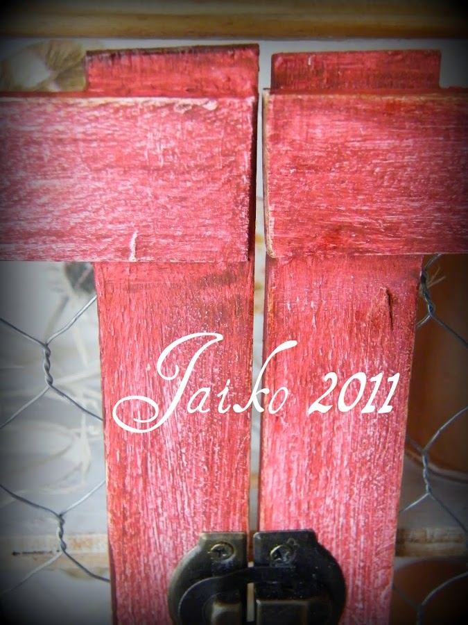 Una vez decorados en interior y exterior he preparado las "puertas" de mi gallinero particular, quería algo country, rustico que decimos por aquí... y con un listón de madera de samba, una madera muy blandita y super fácil de trabajar que podéis encontrar en los centros de bricolaje, he cortado las 8 piezas que unidas en forma de cuadro harán las veces de puertas.
