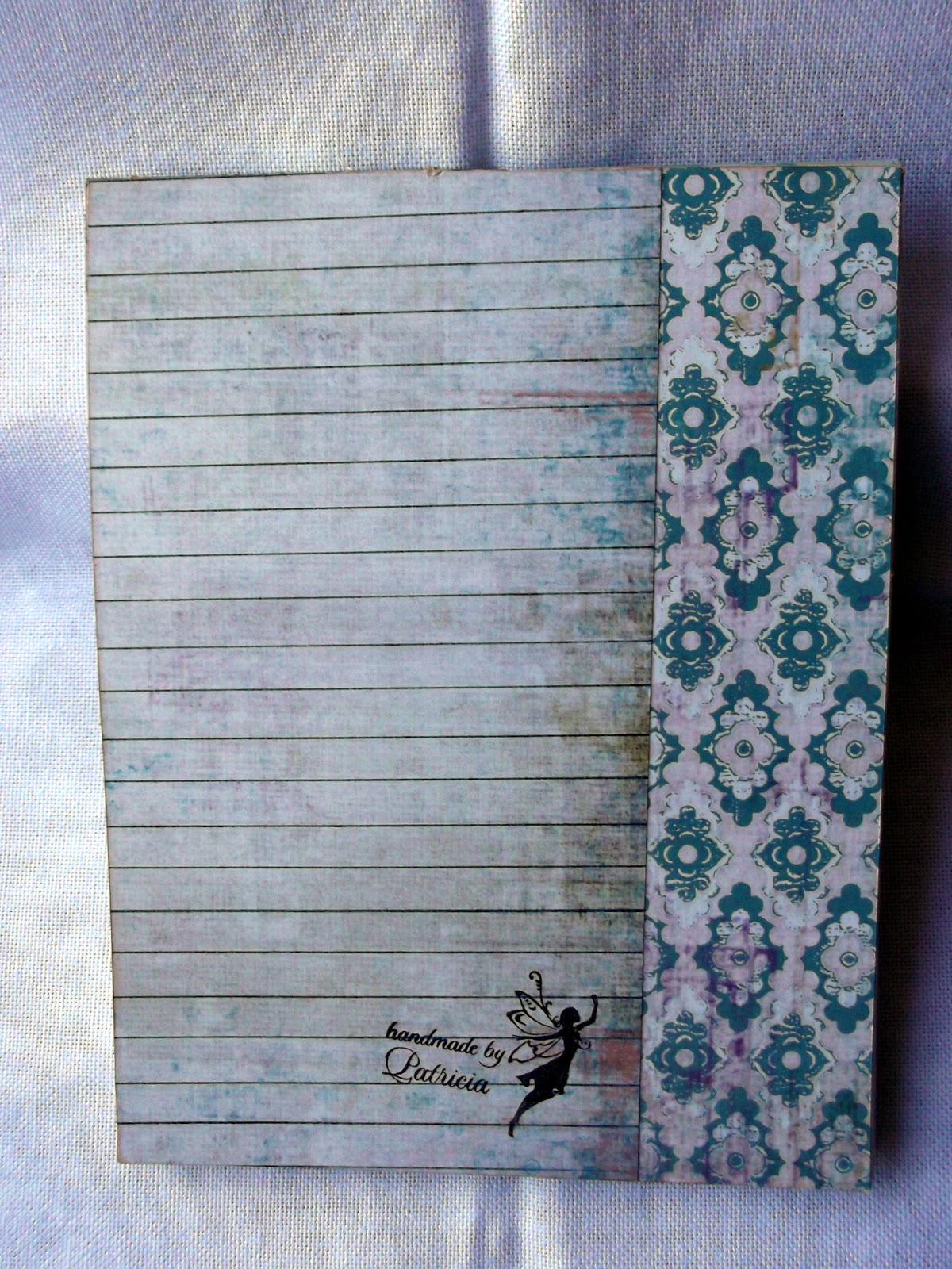 El caso es que me gustaban mucho y, como no tenía previsto hacer ningún pedido de material en los próximos días y me entró la prisa por tener uno, decidí buscar un soporte con el que hacérmelo. Encontré una libreta de publicidad a la que añadí unos restos de papeles, unos rub ons, unas letras recortadas con la "Craft Robo y una pequeña etiqueta hecha con la rotuladora.