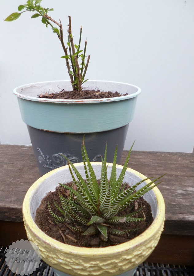 Una maceta decorada frugalmente,como todas las cosas lindas que nos presenta Marce cada Finde Frugal..