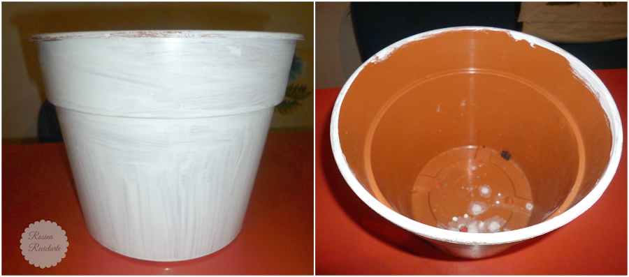 Hay que tener en cuenta que para pintar sobre plástico tenemos que usar algún producto que cree mordiente. De otra forma se desprendería la pintura.