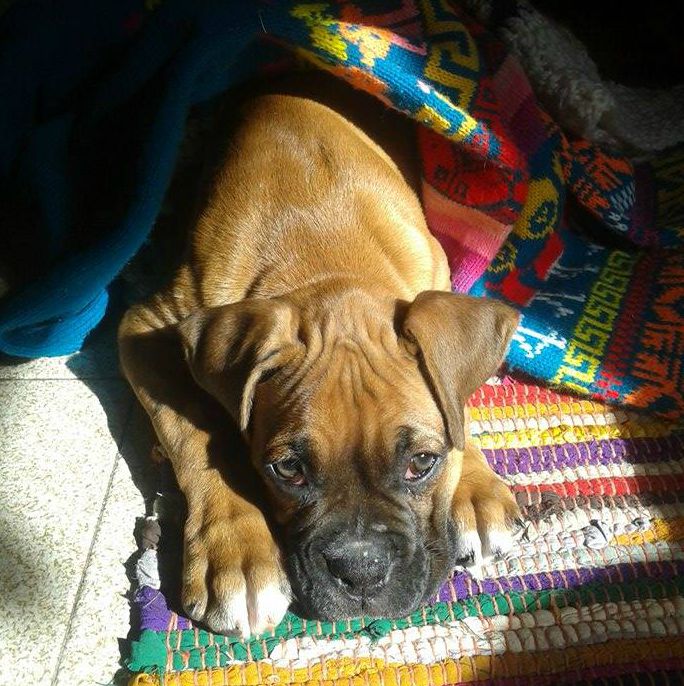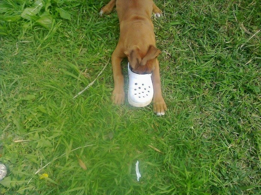 Donde se vio un cachorro tranquilo? y menos un Boxer.Conclusión,arrasó con todo lo que pudo, manta del sofá, sofá, pantuflas,medias,plantas,macetas.