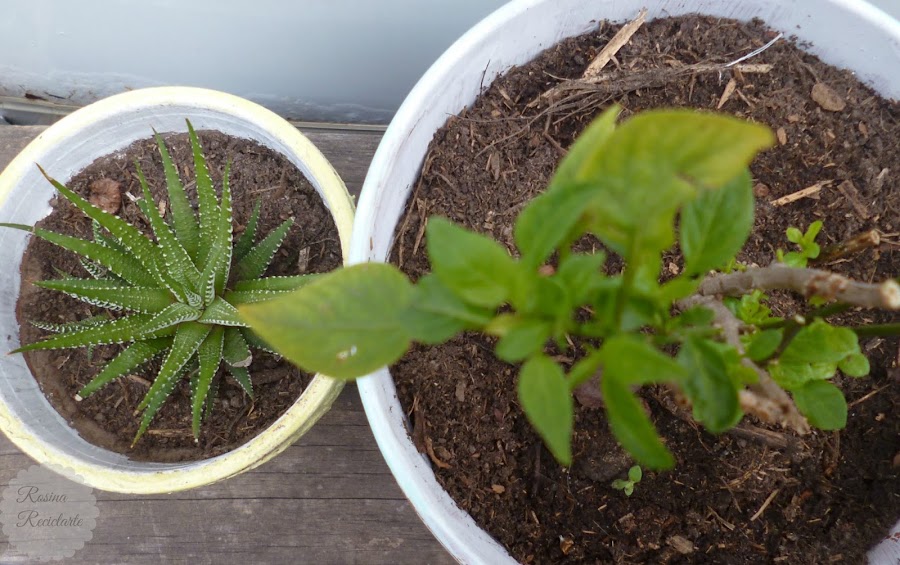 Una vez que trasplanté el ají a su nueva maceta caí en la cuenta de que las macetas quedaron muy mononas,pero van a seguir expuestas a la hiper activa Vera.