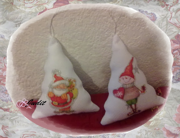Estos son unos arbolitos hechos en tela, rellenos de guata y con aplicación de la servilleta en tela.