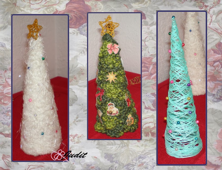 Esto árboles están realizados con un cono, e hilo, llevan perlas y algunas aplicaciones de servilleta. (¿Se nota que me gustó la técnica?)