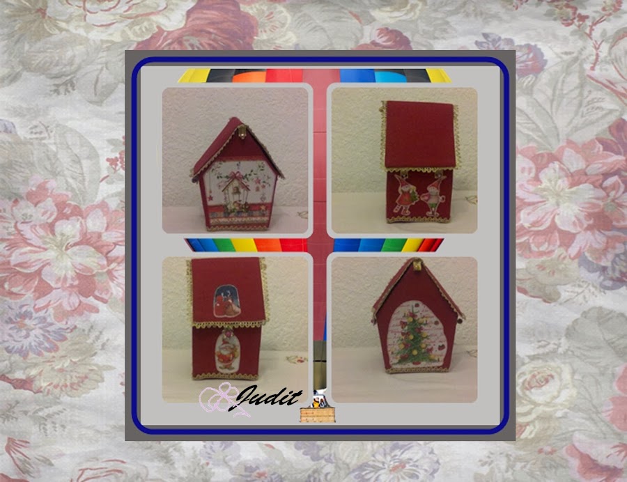 Es una casa y como no tengo el paso a paso, lo comento. Está hecha de cartón, la forré con tela y en ella apliqué la servilleta. Vaya, me explico genial ¿no?