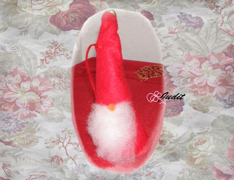 Y este es mi gracioso Papá Noel, solo es un cono, forrado con fieltro, un poco de algodón para la barba, el sombrero que es otro cono y en su punta un cascabel.