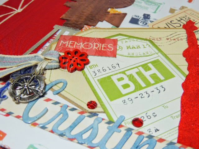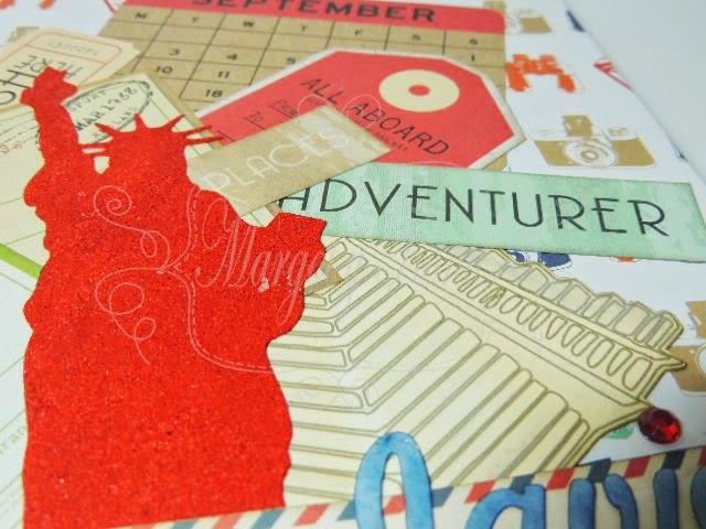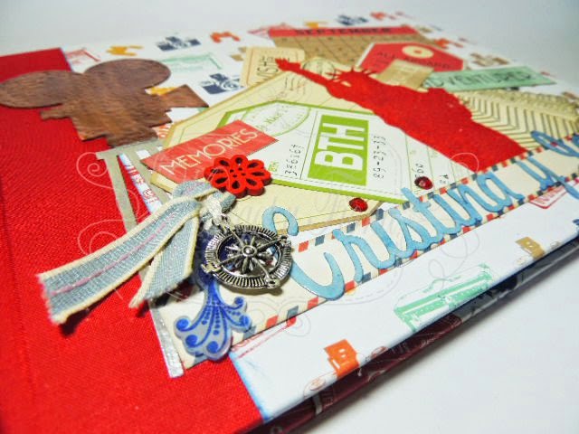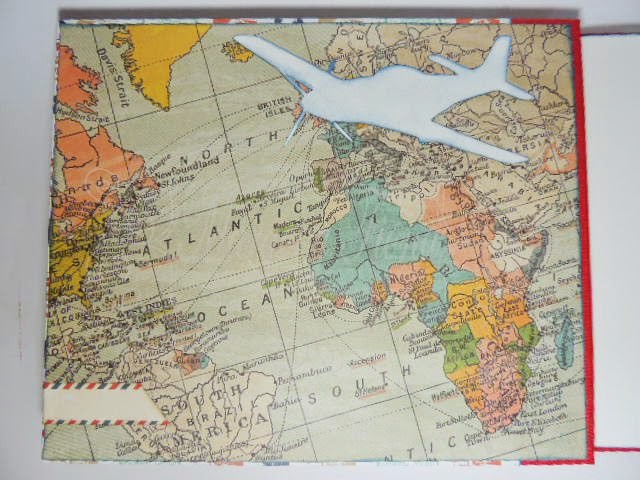Para el papel opté por la colección All Aboard de Papermania Docraft, tanto los exteriores con esas cámaras tan chulas como los interiores con los mapamundis.