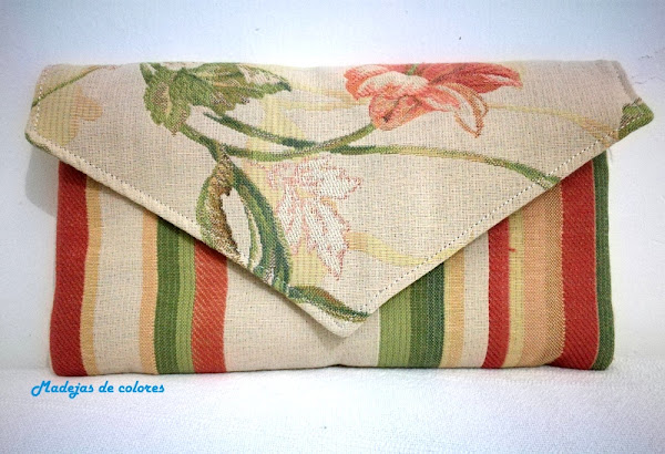 Y con esta última empiezo las primaverales, con base de listas en verdes diferentes, rojos y ocres y tapa en mismos tonos con flores.