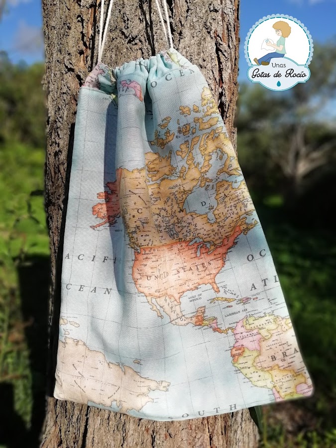 Esta loneta queda bien se use en lo que se use, ya sea en una bolsa fin de semana como la que me hice y al fin estrené, o una funda de cuaderno como esta que le he regalado a mi sobrina Teresa, a la que le encantan los mapas.