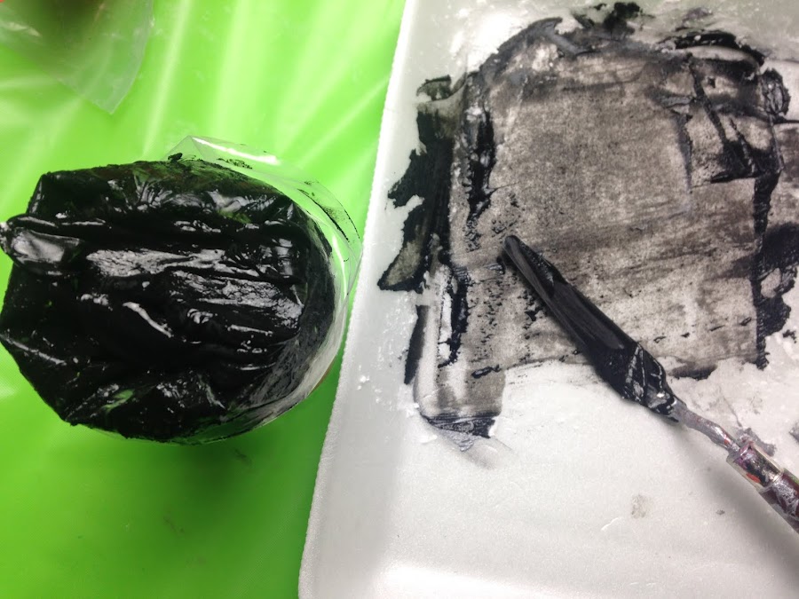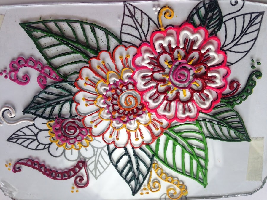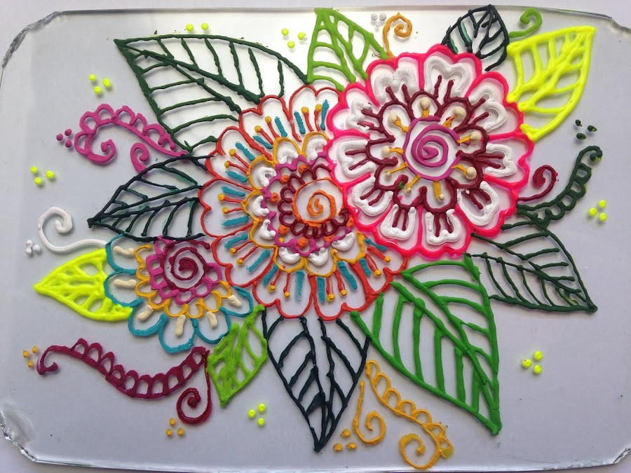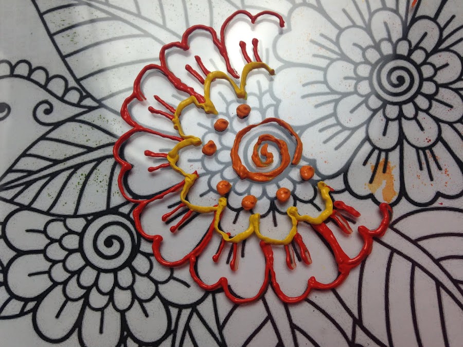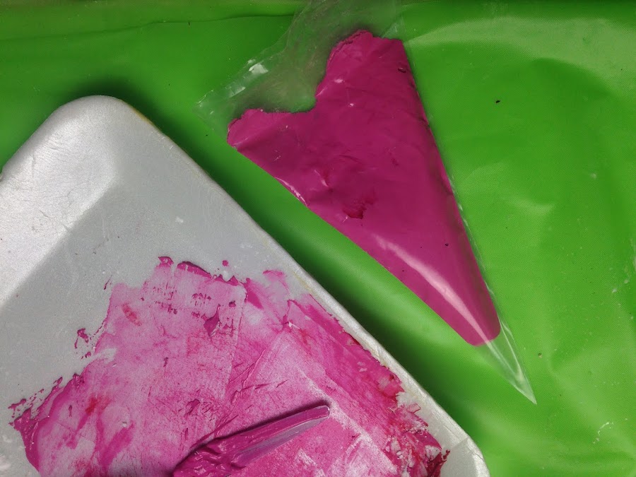 Luego de unir los dos materiales envasar el acrílico más espeso en la manga de repostería como se enseñó en el tutorial:Como usar Pintura Acrílica como Pasta Dimensional