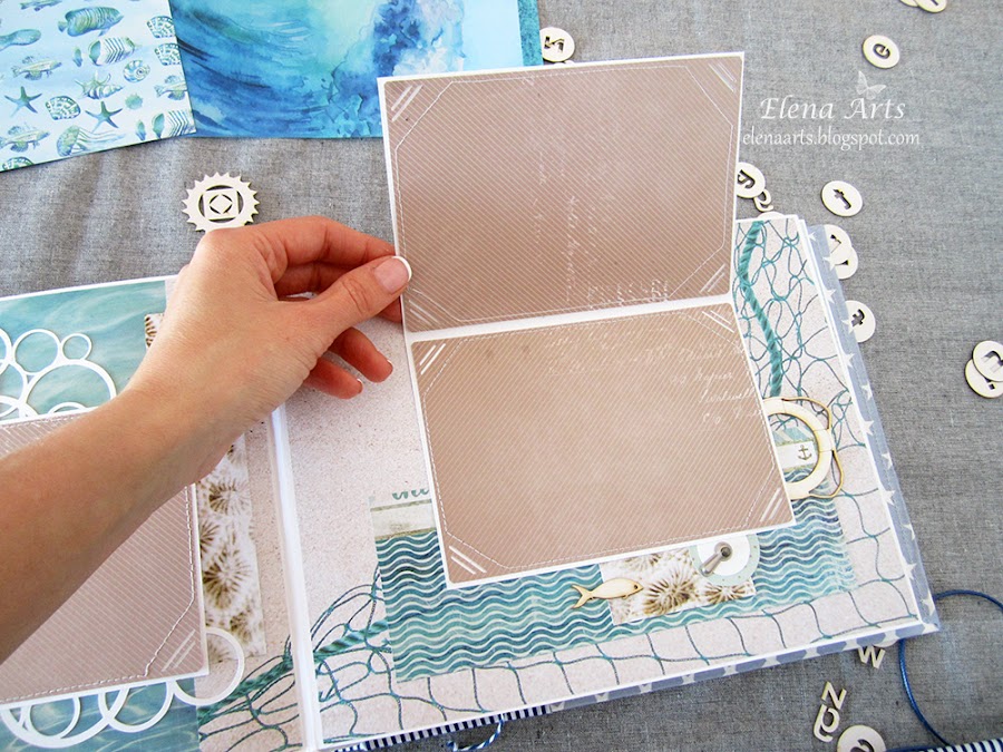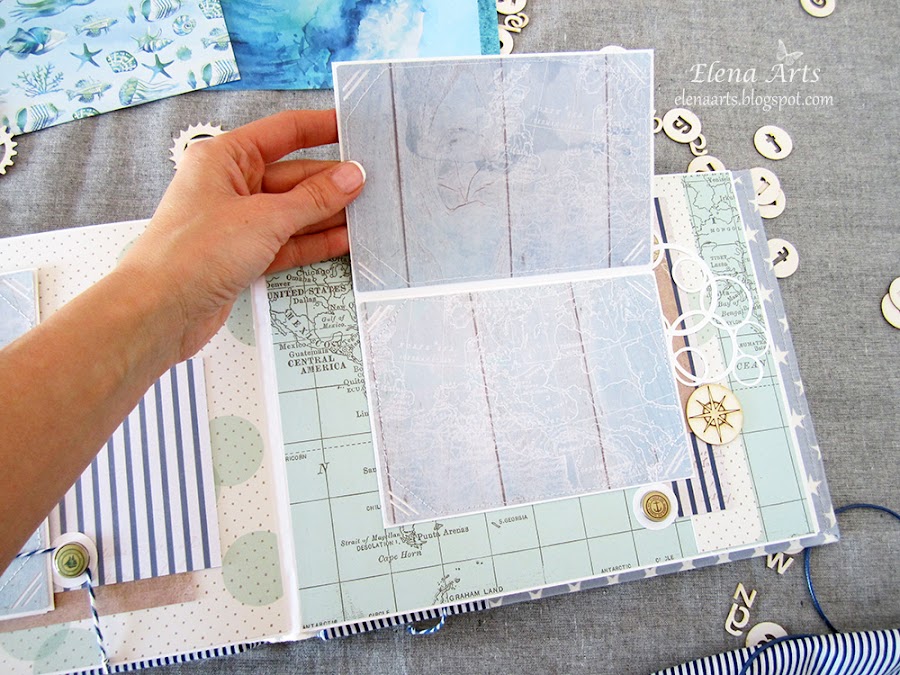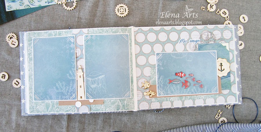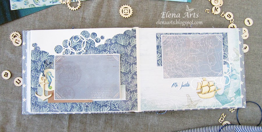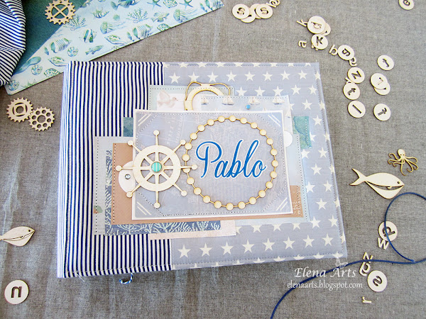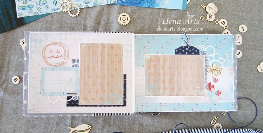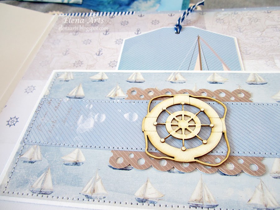 El timón, el marquito redondo y otros chipbords son de Kora Projects y hacen un papel imprescindible en la decoración de todo este trabajo. Los papeles que he utilizado en este proyecto, son de diferentes fabricantes, incluidos los de Kora projects, como esta colección para Primera Comunión con motivos marineros.