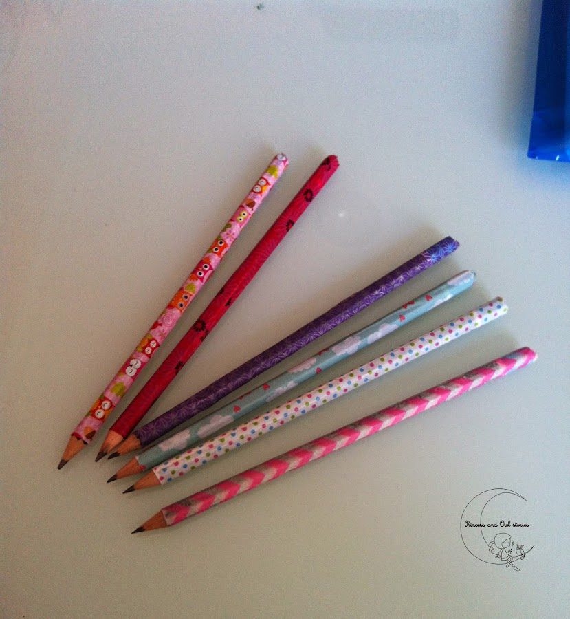 5. Si tienes en casa Washi Tape puedes decorar los lapices con diferentes diseños a tu elección, es una opción original y divertida para intercambios con las amigas del cole , mira el tutorial en el blog de Princess and Owl Stories