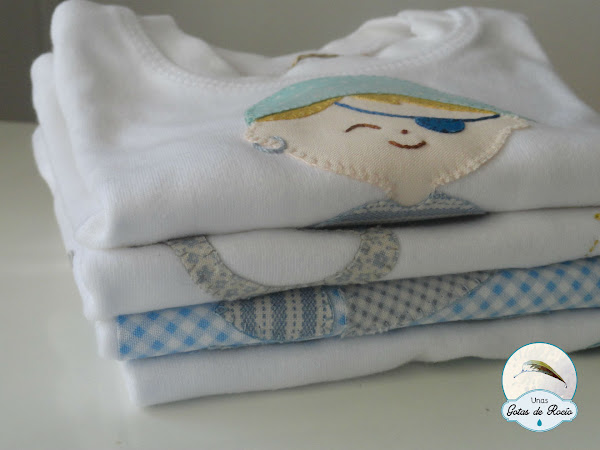 La primera que hice fue la del pirata. En la habitación de Álvaro hay un cuadro de un pequeño pirata, así que sabía que no era un error. Además, ya tenía preparadas las plantillas para este pirata que hice para una mochila, así que eso que me ahorraba.