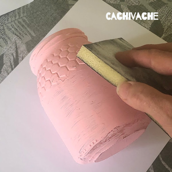 En segundo paso damos una mano de lija fina para dejar una superficie más lisa y si queremos insistir en alguna zona dará un aspecto de envejecido...