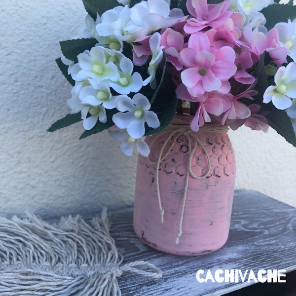 El primer paso vamos a pintar el tarro con pintura a la tiza, en mi caso es color rosa palo y dejamos secar...