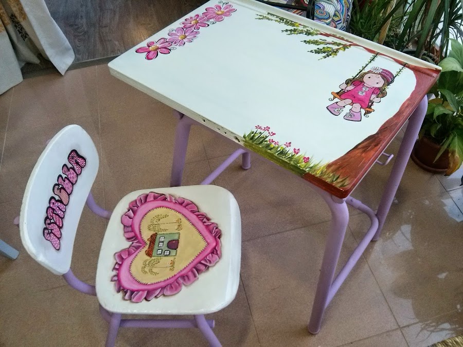 Esta vez son pupitres retirados del colegio y vendidos a un precio simbolico, esta vez toca el de niña, a mi me encanta como ha quedado ¿y a ti?