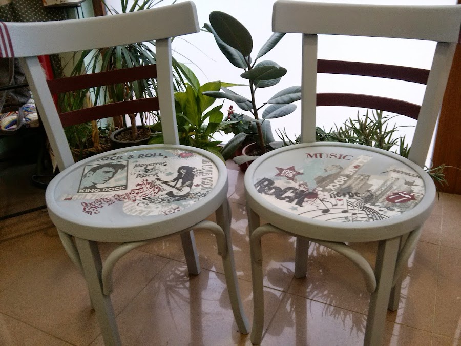 Quien no tiene en su casa unas sillas como estas o parecidas, con un poco de decoupage y pintura han quedado chulisimas.