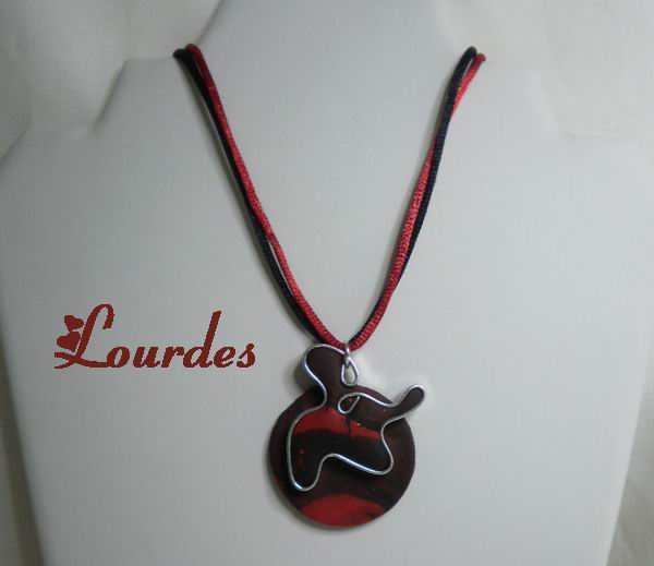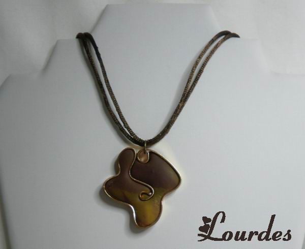 Collar de arcilla polimérica con diferentes texturas y acabados y alambre grueso. Para Inés con todo mi cariño