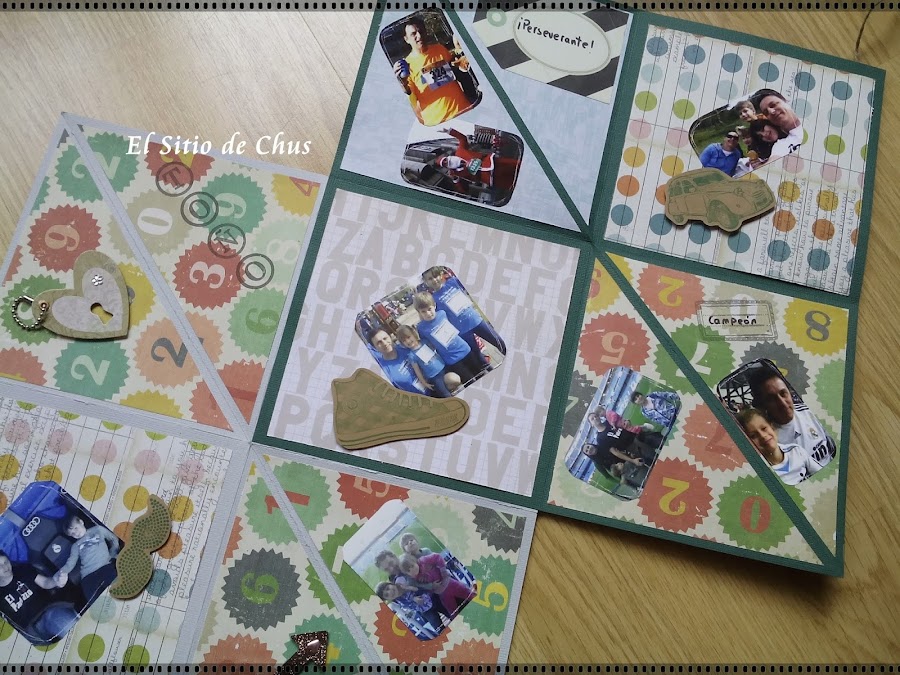 En marzo hicimos una amigas y yo un curso de scrap que nos encantó. En él hicimos un mini álbum plegable para regalar a nuestros maridos / parejas / padres por el Día del Padre.
