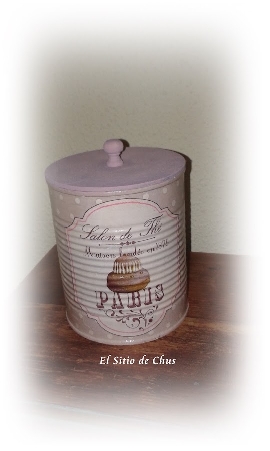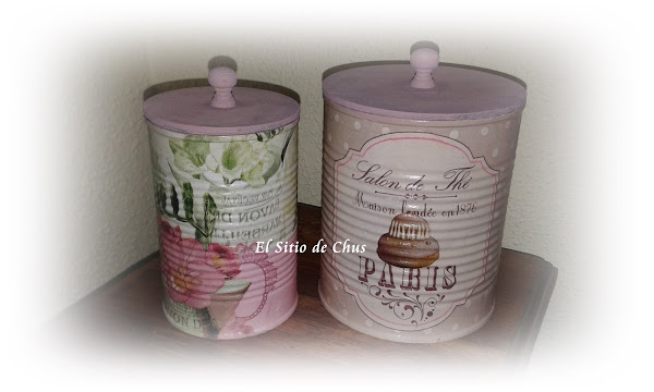 Lo que os enseño hoy son unas latas de conservas decoradas con decoupage, y pintadas también con pintura de tizza. Se las regalé a mis amigas Maite y Verónica cuando vinieron a hacernos una visita a Madrid. Les gustaron mucho, espero que a vosotr@s también.