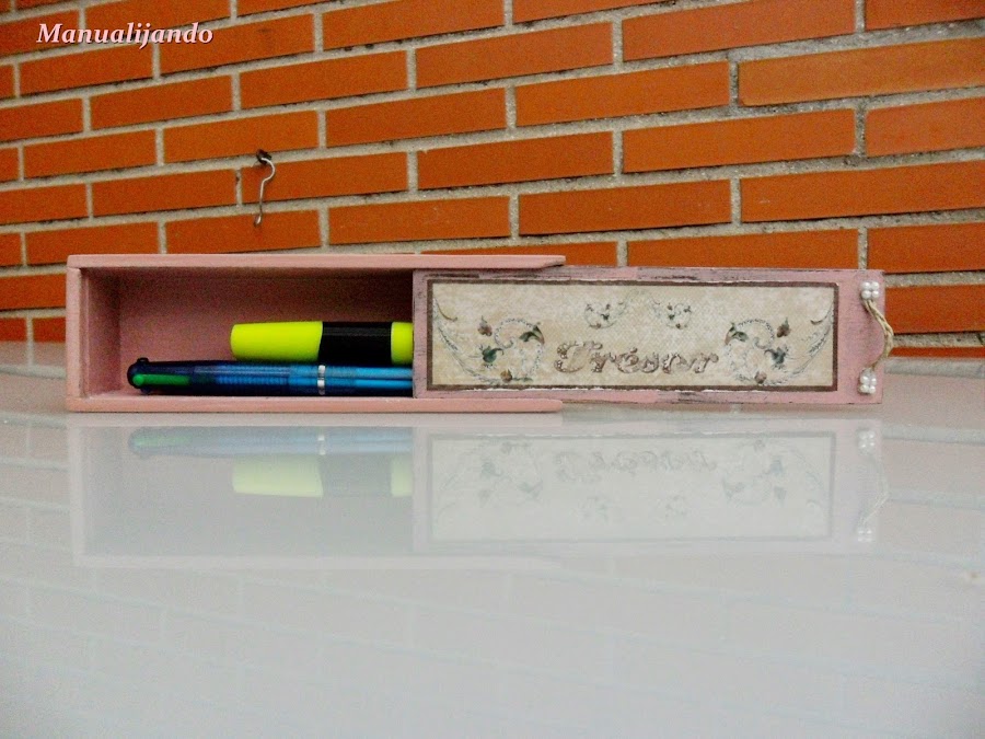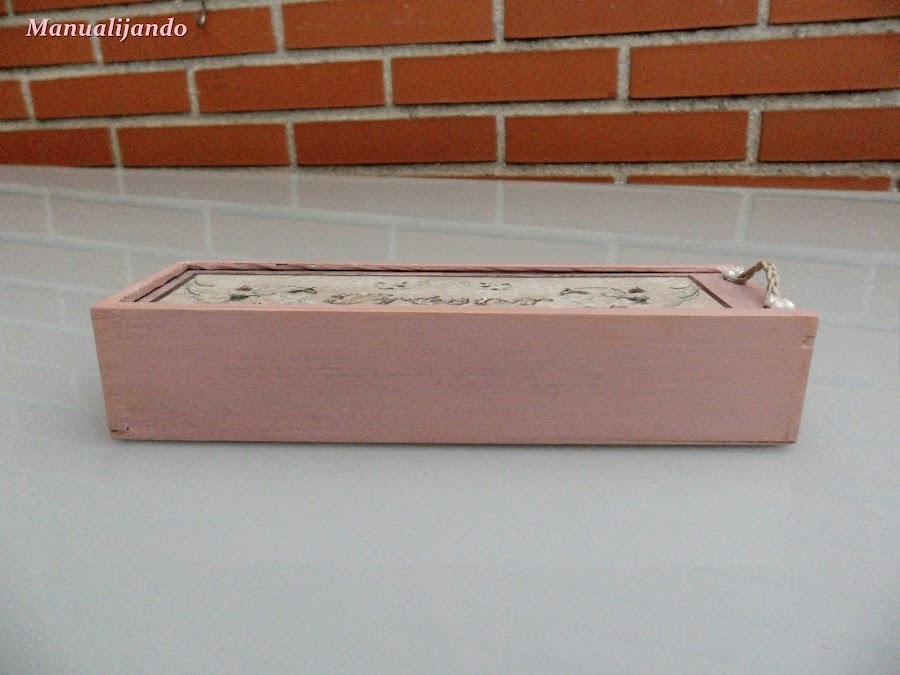 Hoy os quería mostrar una cosa pequeña, mi marido, que siempre se encuentra cosas, no sé cómo lo hace porque yo no encuentro nada, bueno pues se encontró una cajita, de esas que usábamos antiguamente como plumier, pero no tenía tapa, pero él, que es tan apañao, me hizo una y me la dió para que la decorara.