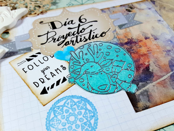 Y para el martes 6 de Diciembre, teníamos que mostrar un proyecto artístico. Pues la verdad es que estuve dudando entre varios, pero al final me decanté por mi Art Journal. Esta página por ahora es un batiburrillo (se escribirá así) de pinturas.