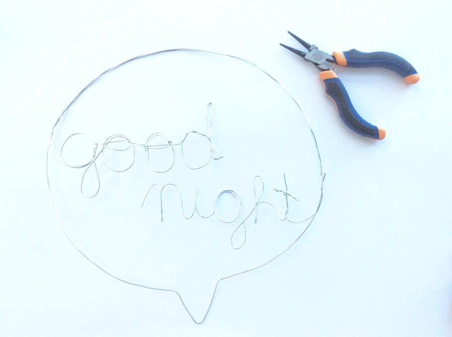 Se trata de hacer mensajes de neón en bocadillos con alambre. ¿te apuntas? Yo de momento me he hecho este de "Good night" para poner en el dormitorio.