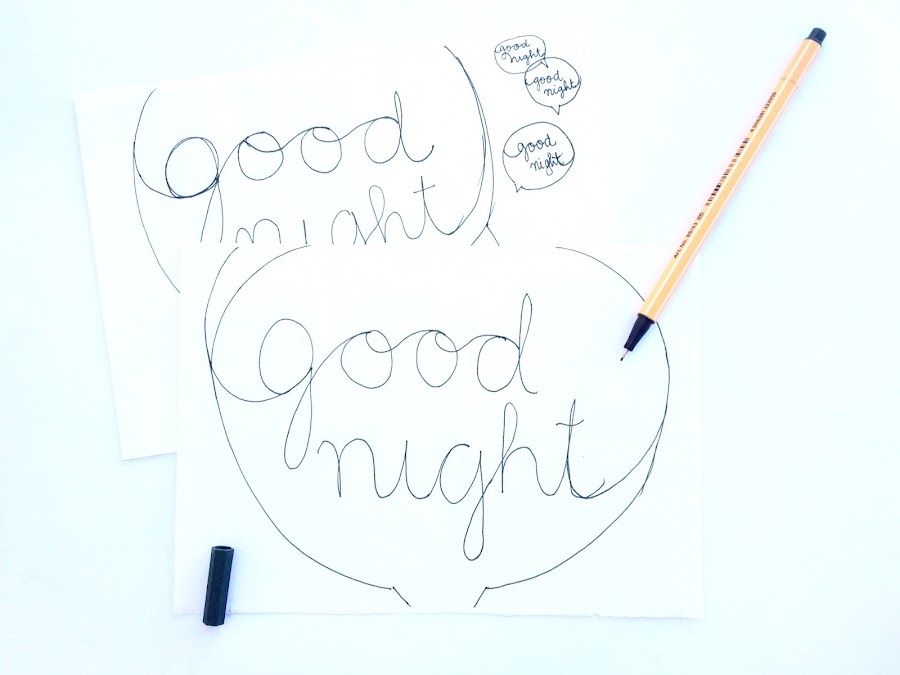 No os olvidéis de dejar "el rabo" de cada palabra bastante largo para poder unirlo luego al bocadillo. En mi caso, he dejado más largo el principio de la palabra good y el final de la palabra night porque voy a unir cada una a un lado.