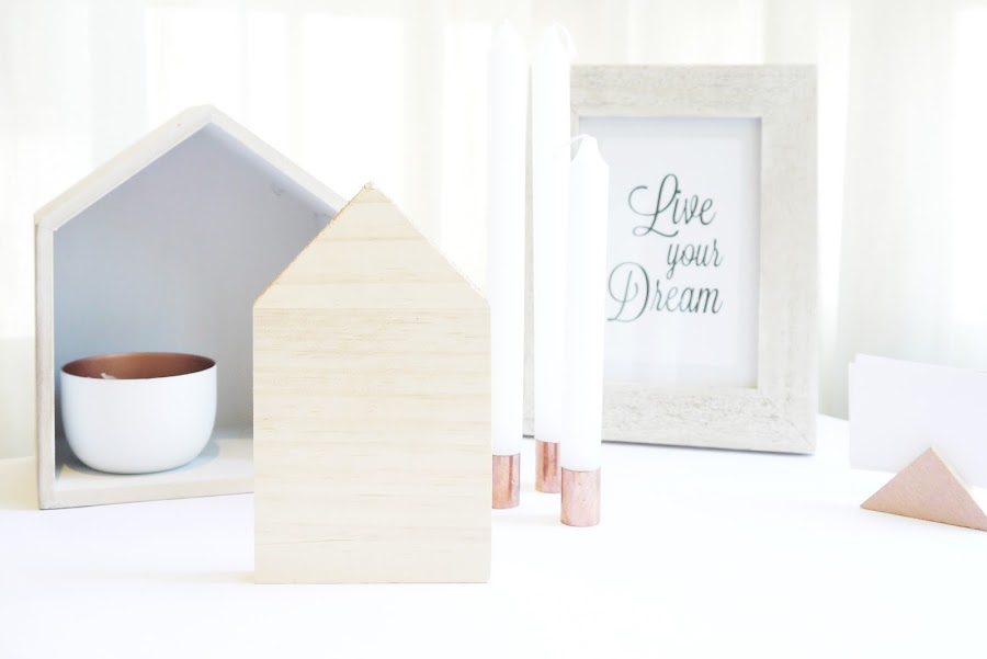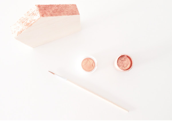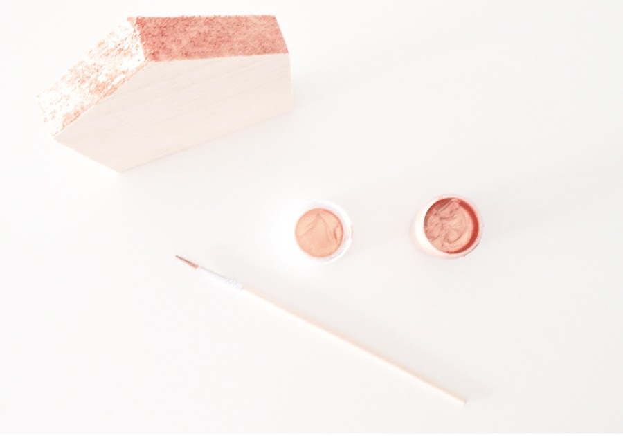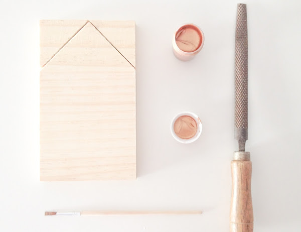Lo que hace falta para realizar este diy es: un tablero de madera de 10x20cm y 2cm de ancho (si es madera blanda mejor, que nos costará menos cortarla), una sierra (si no tienes, normalmente puedes cortarla donde compres la madera, yo la corté en Leroy Merlín, por ejemplo), una lima o una lija, un pincel y pintura en color cobre (o el que prefiráis).