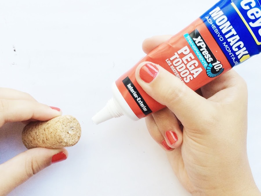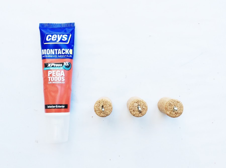 Repetimos este paso con todos los corchos que queramos hacer y dejamos secar toda la noche para que el pegamento adquiera su máxima potencia.
