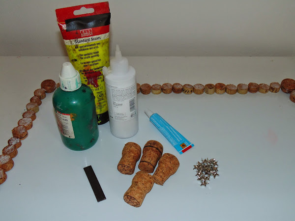 Materiales: Corchos de botellas de cavaPintura acrílica ImánPegamentoTachuelas