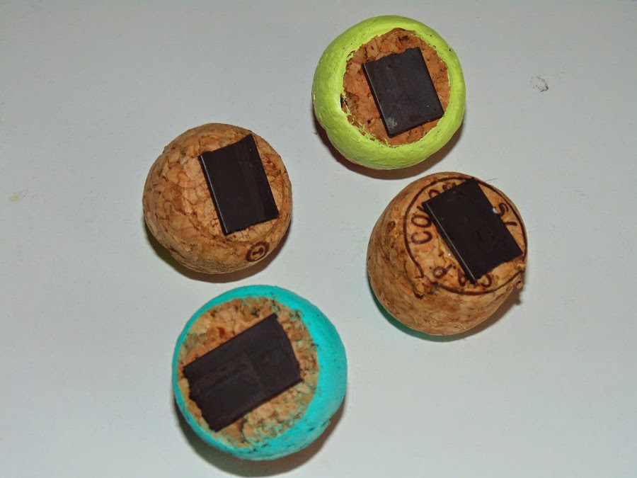 El último paso, fue pegar el imán en la parte trasera de los corchos.