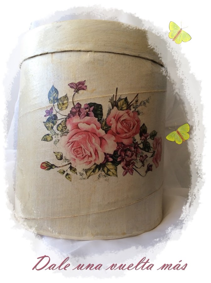 Comencé dandole una vuelta más a unos tarros de cartón de los que viene el dulce de leche repostero, estos tarros ya fueron decorados en su momento con motivos infantiles, para que mi hija guarde los juguetes de la cocinita, pero los chicos crecen y ya está atravesando su adolescencia, por lo que estos tarros volvieron al taller.