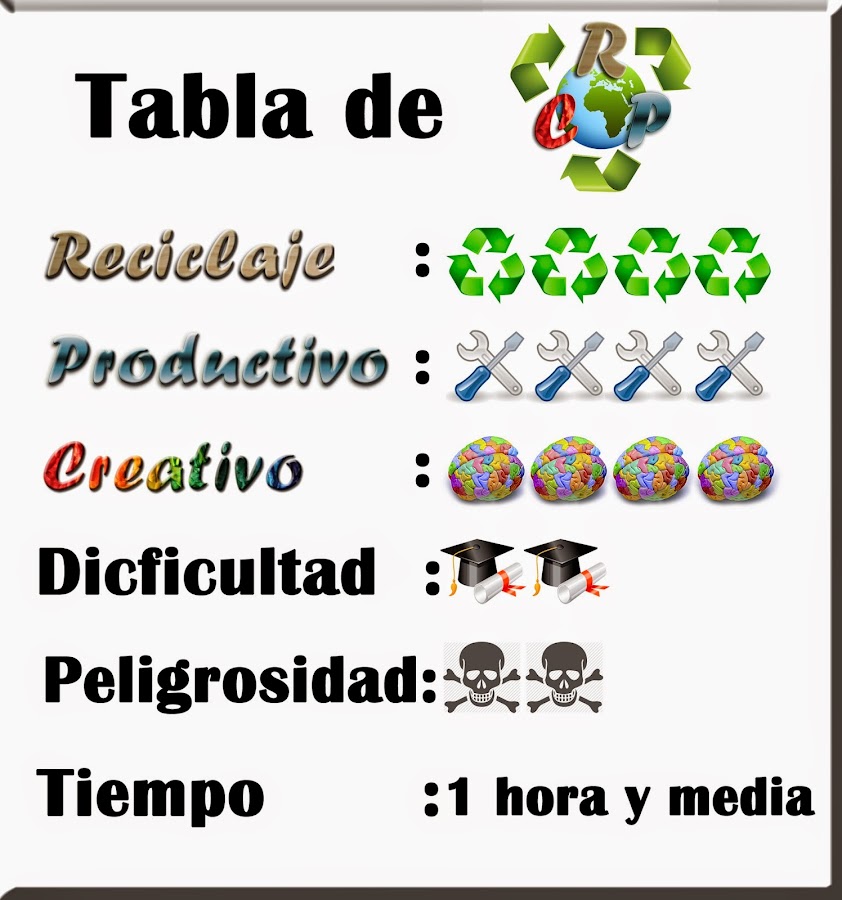 Es por ello que en la tabla de Reciclaje Productivo Creativo he puesto doble dificultad. Y he aumentado también a 2 la peligrosidad porque además de necesitar fuego para calentar el agua con las cáscaras de cebolla, también hay que trabajar con lejía y es necesario que para ambos momentos haya personas adultas supervisando las tareas.