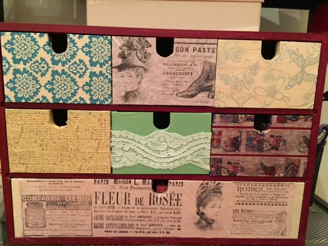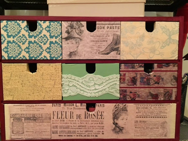 Así, poco a poco, vamos decorando cada uno de los cajones a nuestro gusto. Cuando los tengamos todos, también podemos forrar la carcasa del mueblecito, aunque en esta ocasión, hemos preferido dejarlo sin papel para resaltar la madera original.