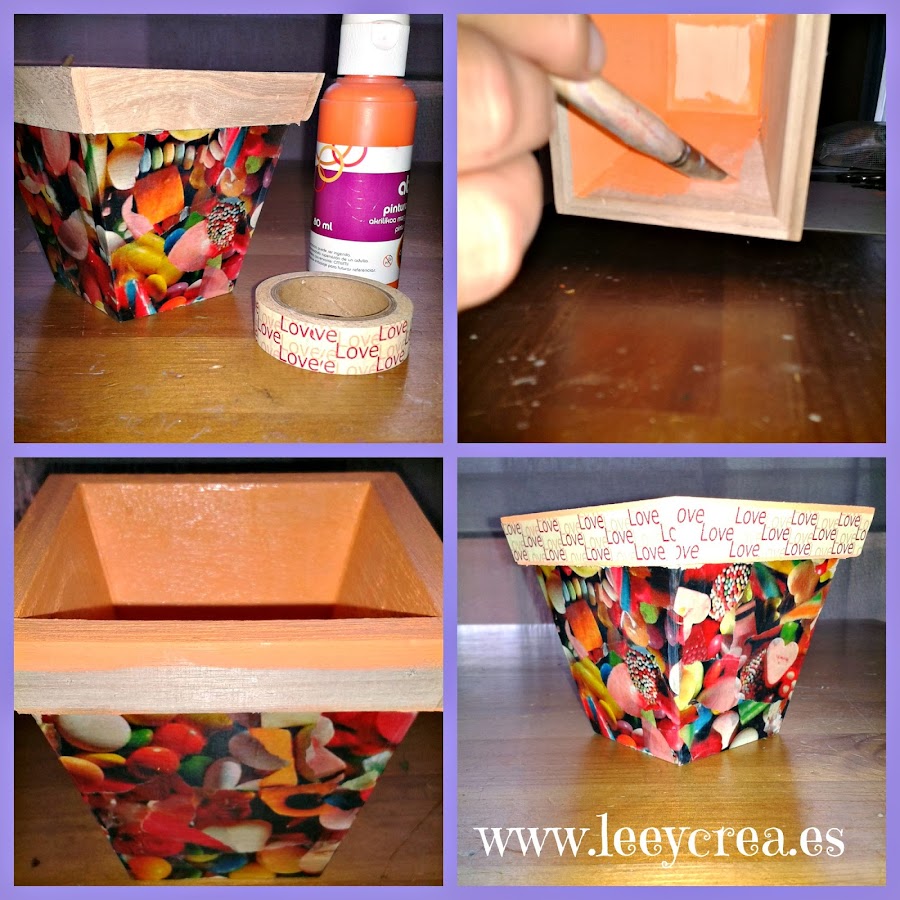 Paso 1: pintaremos el interior del cubilete y los bordes con la pintura acrílica. Dejaremos secar entre 1 y 2 h.