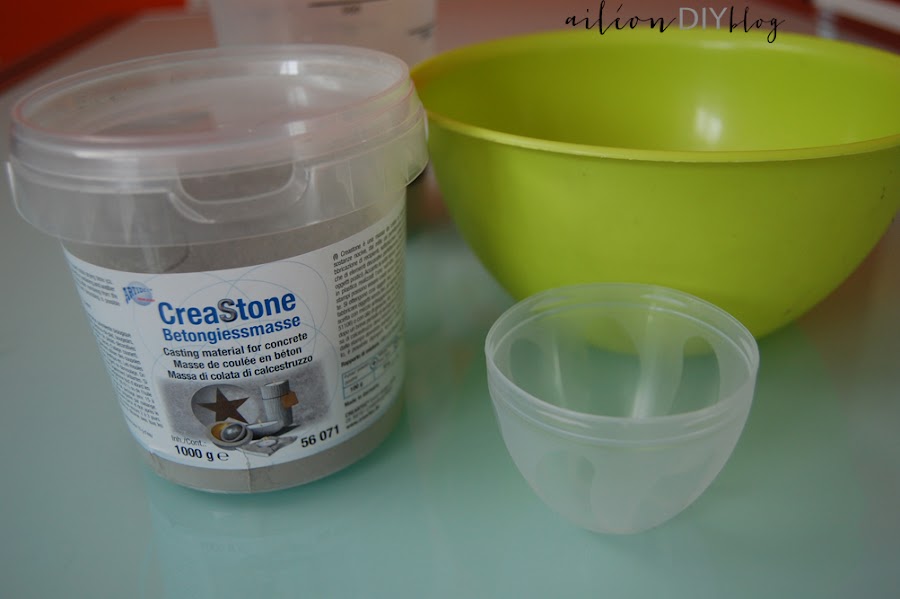 Bueno, a lo que íbamos, este tutorial es increíblemente sencillo, solo se necesitan dos cuencos (uno grande y el otro más pequeño, el polvo de hormigón y agua, así de fácil.