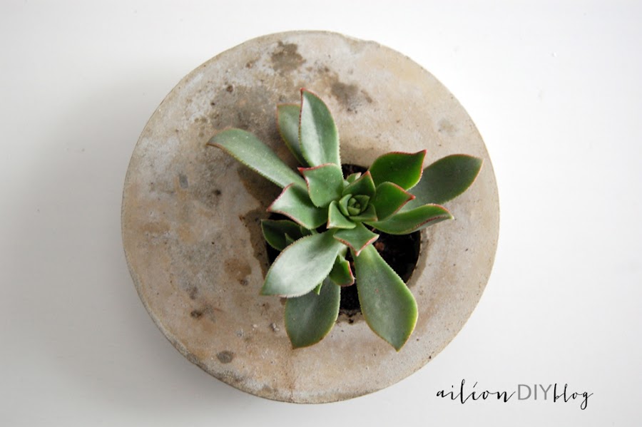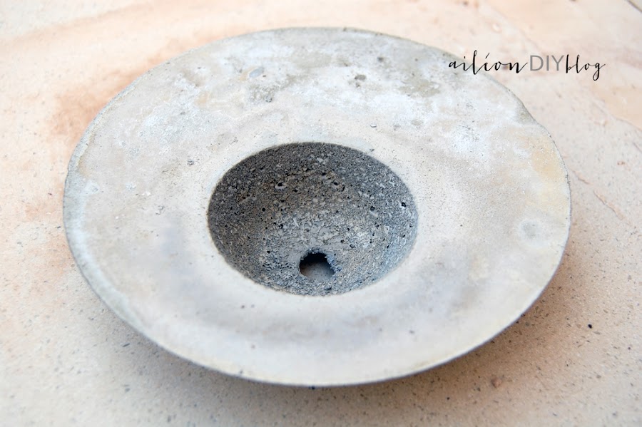 Dejamos secar el hormigón al aire libre 24 horas y, debido a que los cuencos eran totalmente lisos, solo hay que darle la vuelta y el macetero saldrá por sí solo. El hormigón de por sí es poroso pero no hay que olvidar hacer un agujerito de drenaje para la plantita que pondremos encima.