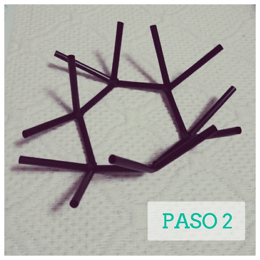 PASO 2. En las puntas libres mete las pajitas de 45 cm.