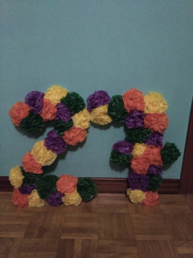 recorta la silueta en el cartón con la forma que desees, en nuestro caso hemos hecho un 27 porque es para una fiesta de cumpleaños.