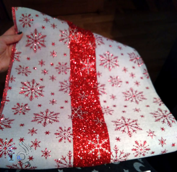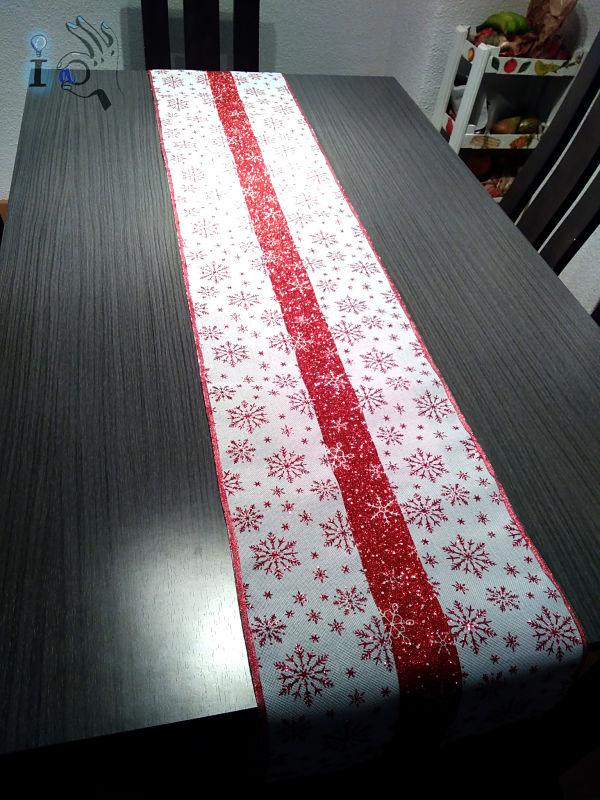 Lo cierto es que la inspiración vino cuándo bajé al bazar asiático y vi estos rollos de tela o cinta con copos de nieve. Mis musas se volvieron locas y aunque tenía muchas otras ideas en la cabeza las mandaron todas al garete y me obligaron (casi a punta de pistola) a comprar las cintas para hacer un camino de mesa.