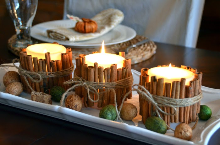 Se trata de envolver la vela con palos cortados en trozos o canela en rama...te aconsejo que las pegues con pegamento o silicona caliente. Una vez pegados, átalos con cordel, hilo de cáñamo o cinta de colores.