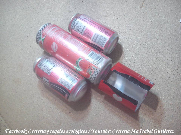 Aparte, cortamos la parte superior e inferior de las latas de aluminio, utilizaremos solo el tubo de en medio...