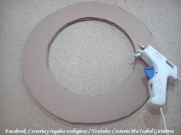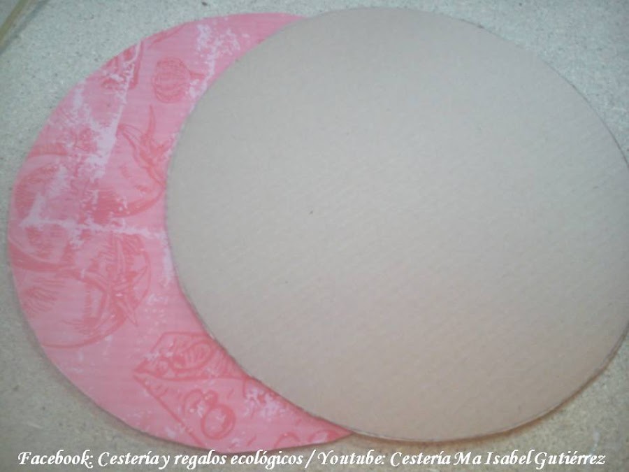 Cortamos dos ruedas de cartón grueso, como molde podemos utilizar un plato grande...