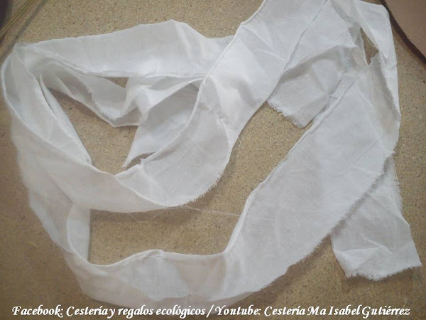 Aparte, cortamos una tira larga de tela, puede ser cualquier tipo de tela, pero de preferencia que sea en color blanco...