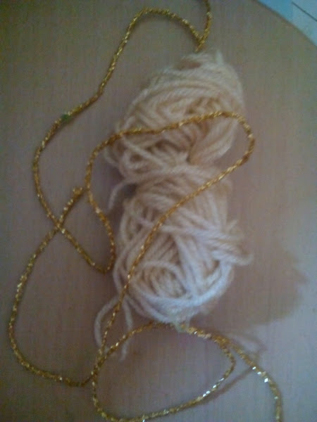 Aunque nos da la opción de usar varios colores de lana, yo elegí un color crema y un hilo dorado para hacer contrastes con mis calipsos