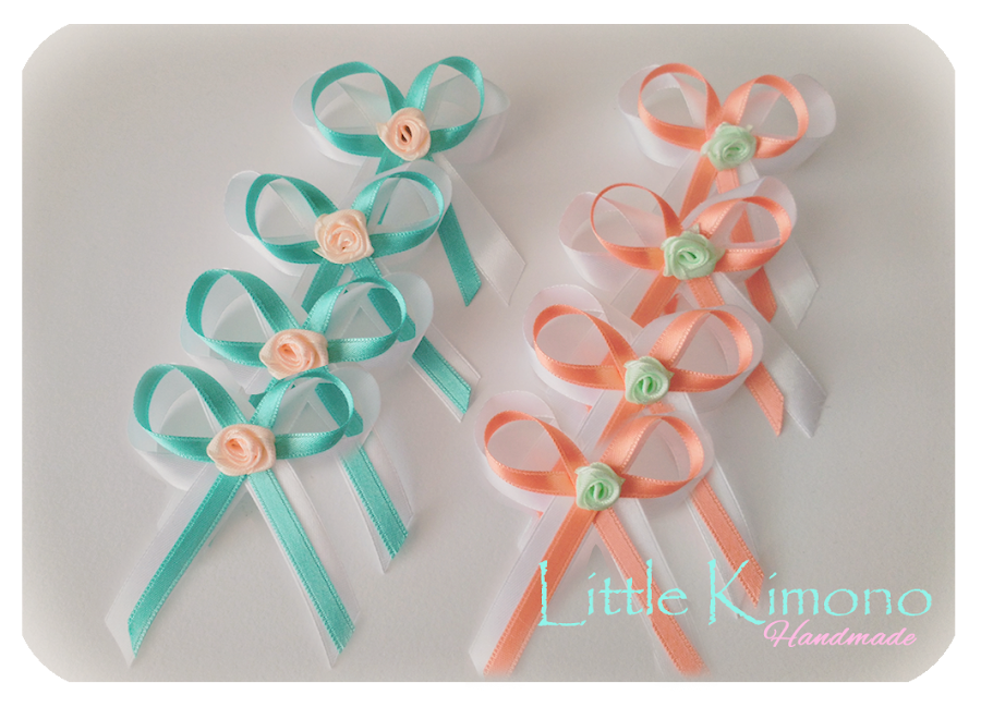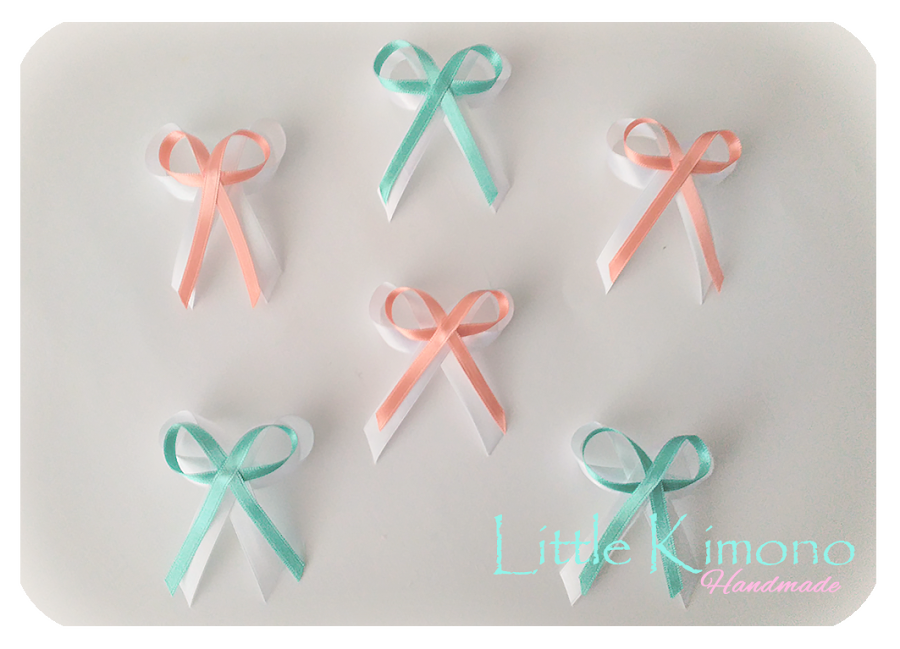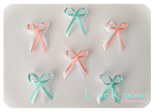6. Sexto paso: haremos unos lazos de 2 tonos, puede ser banco y otro color para superponerlos y que queden más chulos ;) En mi caso usé blanco y 2 tonos más para alternarlos.