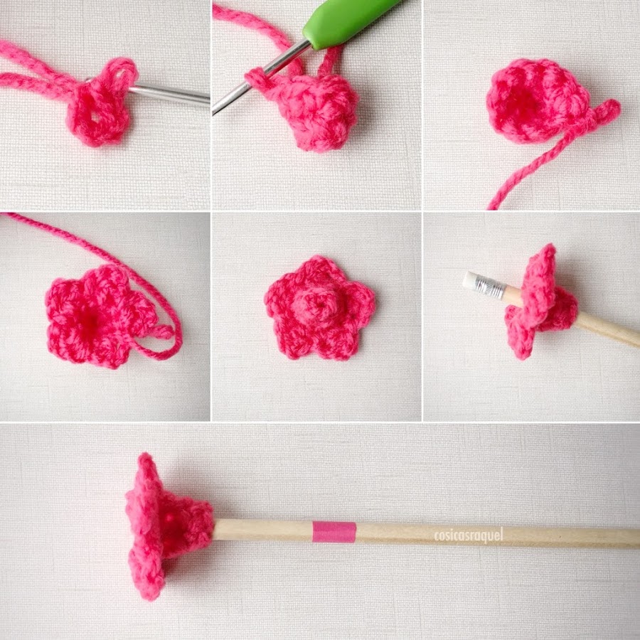 Hola crocheteras! Hoy traigo un patrón super chulo y rápido de hacer, una flor de crochet para ponerla de tope en los lápices que no te llevará más de 5 minutos .