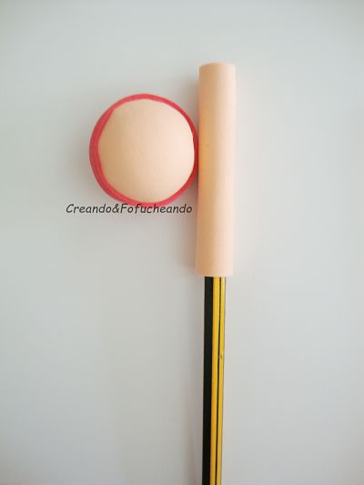 Super fácil. Coge tu lápiz,preferiblemente sin punta,y pega en la parte superior el cachito color carne de Goma eva de 35x65.