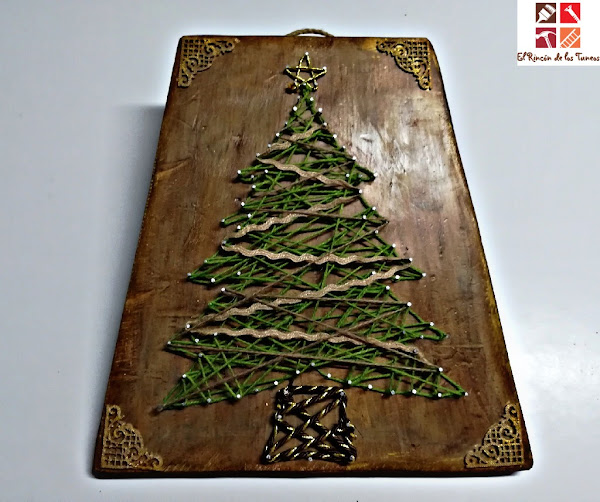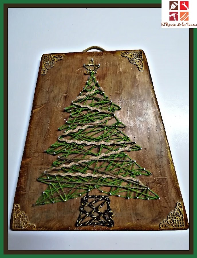 Que he hecho para este reto? pues como le he cogido el gustillo a la técnica de String Art o hilorama, he confeccionado un árbol navideño con muchos clavos y mucha cuerda.